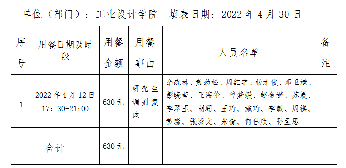 威廉体育williamhill加班(值班)误餐补助台账(公示表) 单位(部门):威廉希尔体育 填表日期:2022年3月31日 序号 用餐日期及时段 用餐金额 用餐事由 人员名单 备注 1 2022年3月26日 8:00-18:00 690元 研究生复试 熊静...