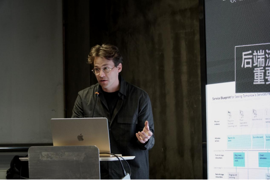 3月16日,伦敦艺术大学(UAL)切尔西公司João Marrucho老师在公司三楼小展厅开展了一场关于“用户体验设计(UX Design)与人工智能(AI)融合创新”的专题讲座。讲座现场座无虚席,吸引了众多师生参与。图1 João Marrucho老师在分享伦敦艺术公司的服务设计...