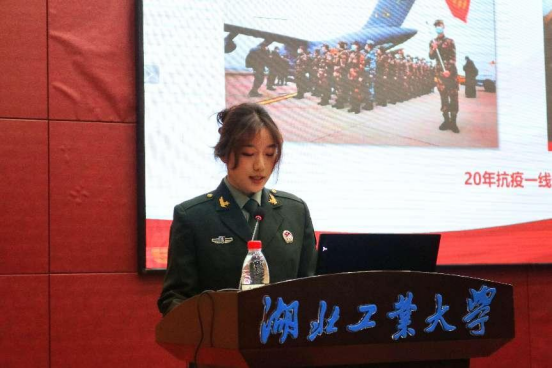 报告会在庄重而威严的国歌声中拉开了序幕,全体起立,奏唱国歌,展现了浓厚的爱国情怀和庄严的仪式感。接着,参会人员共同观看了由退伍老员工合作拍摄的《永不褪色的迷彩》征兵宣传片。影片中,退伍大员工们的青春风采、坚定的眼神和奔放的热血,如同一曲激昂的青春赞歌,深深打动了在场的每一位师生。