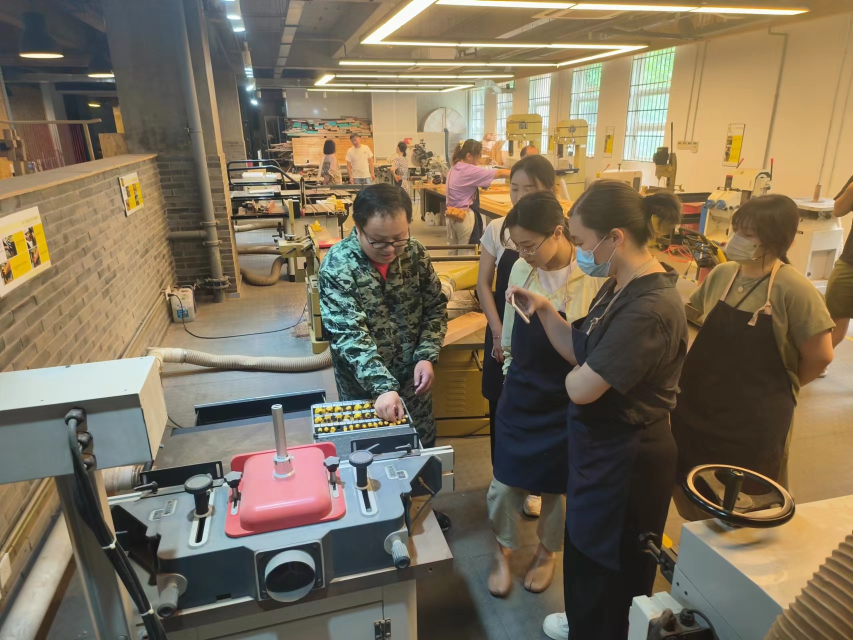 实验中心程志远、胡迎求两位老师分别对实验室木工区大型机械化设备、金属切割设备、激光成型设备的使用规范和注意事项进行了详细说明,并对设备的安全使用进行了示范操作。上午的培训由程志远老师向参加培训的老师们介绍并演示了实验室的各种木工设备,包括推台锯、热狗据、线锯、平刨等。下午由胡迎求老师介绍并演示了实验室金工区域的设备,并重点指导了激光切割机等师生使用频率高的仪器设备。
