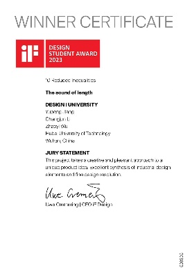 近日,威廉希尔体育再次收获竞赛捷报,江驭鹏、李昌骏、吴昭仪三名员工共同完成的作品《The sound of length》荣获了包括IF、IDEA和亚洲设计奖等多个国际设计奖项,且在IF员工设计奖中获评TOP 78 winner,成功入选2023年度三星设计奖(该奖项仅五件作品入选)。