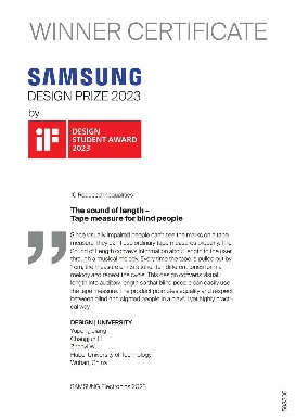 《The sound of length》是一款专为视障人群设计的卷尺,通过音乐的旋律向用户传达长度的信息。这一创新设计充分应用听觉感官,用音乐帮助盲人通过辨识旋律的长短,将观察刻度转化为聆听刻度,从而达到正常使用卷尺的目的。该作品打破行为常规,不仅从使用方式的表象层面破壁,更是将“以人为本”、“一切以人民为中心”的理念充分运用到设计中,既注重了人与人之间平等与尊重的内涵式表达,还以优美的旋律抚触视障人群内心的焦虑与自卑,体现了作品对其身心健康的考量和人性化设计理念。德国“IF奖”、红点奖和美国的“IDEA奖”并列为世界三大设计奖项。其中,IF员工设计奖是国际最大规模的设计奖项,其前身为iF设计概念奖。自2002年创办以来,该奖项已成为全球青年设计师展示创新理念的舞台。本次比赛以“联合国可持续发展目标”为主题,鼓励设计类员工通过创意设计为全球永续发展贡献智慧。IF员工设计奖征集来自设计领域员工的概念构想,要求这些构想既能应对未来的挑战,又能巧妙地结合当代设计和创新思维,碰撞出“可持续发展”的火花,《The sound of length》完全符合竞赛组委会对作品的期盼。