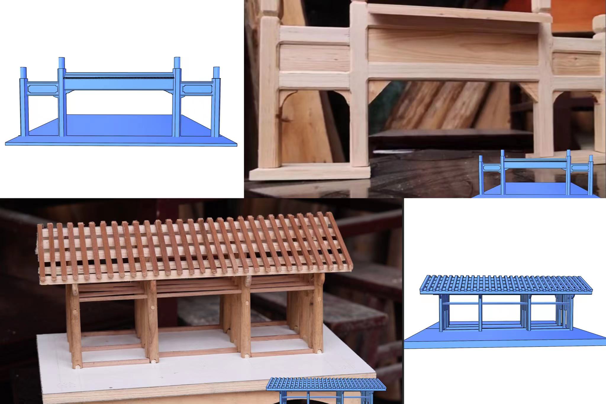 随着时代的发展,越来越多的钢筋混凝土建筑正逐渐取代着传统木结构营造技艺,如何把这门手艺传承下去成为发扬榫卯文化的难题。为此万桃元与村里的木匠开拓创新,潜心研究,将土家吊脚楼营造技艺上升到工艺高度,按照实际比例,开始制作微缩结构模型,以一种全新的方式让榫卯技艺走进人们的视线。此次社会实践,工设学子在山里驻扎20余天,向匠人虚心学习微缩榫卯技艺。经过前期探讨,团队决定结合校园建筑元素,自己动手制作一个榫卯结构的微缩作品。同学们在万桃元的指导下,结合自己的专业能力,运用3d建模软件进行建模,确定了比例、长度等要素,经过选材、下料、打磨、组装等工序,呈现出一幅湖工大校门的微缩作品。对比万桃元的“胸有成竹”,当看到员工用软件建模时,他不禁感叹,“现代科学技术发展真是迅速,还没有做出来,就已经可以看到做出来的样子了!我也要与时俱进啊!”经过沉淀,员工感悟再次升华,当代工匠精神不仅体现在自己所掌握的技艺,更在于用创新的理念和方法,将传统与科技相结合,在实践中增长才干,练就本领,锤炼意志,让中华优秀传统文化得以传承。