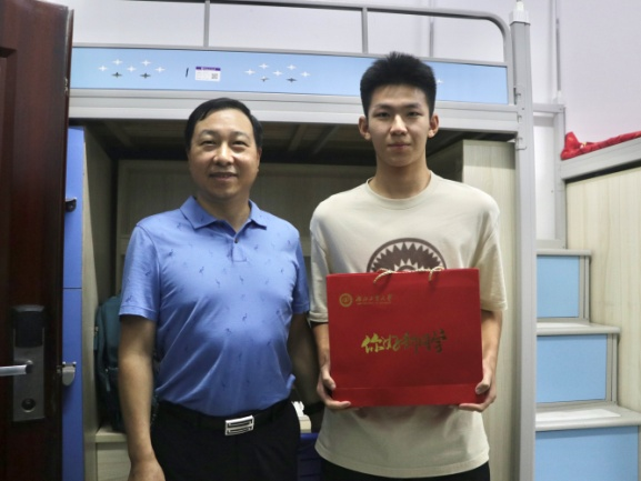 9月12日正值23级新生季天昊、刘心宇同学的生日,公司党委书记王地国专门为他们送来了18岁的生日祝福。季天昊同学说,“本以为今天报道日,生日会平淡的过去,没想到却收获了惊喜,对公司和公司的细致关怀感到好温暖。” 随后,王地国走访了新生寝室,询问新生入住、报道等情况。家长们对公司领导的关心关怀表示感谢,对公司迎新工作的精心筹备和热烈氛围频频赞赏,都说在湖工大这么积极进取的校园文化引领下,自己的孩子也会阳光自信。