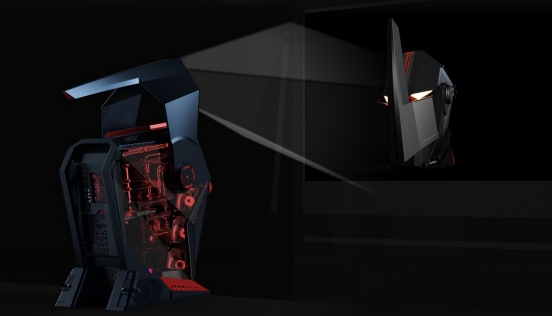 设计者刘梦晴介绍,这款异形机箱名为X-MARS,造型灵感源于中世纪欧洲骑士的头盔,由主体、面具和底座三个主要部分组成。面具设计最大可150°旋转,且转轴处有感应开关,只需调整面具的角度就能改变机箱的工作模式,不再需要点击软件操作,面具在旋转至高点后会露出投影模块,可以满足用户观影、观赛需求。