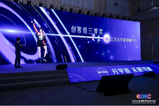 7月4日,在北京举行的2024全球数字经济大会元宇宙创新发展论坛上,2024年“创客中国”元宇宙中小企业创新创业大赛颁奖活动圆满落幕。公司韩旭副教授带领湖工大元宇宙创新中心团队(团队成员:韩旭、邓卫斌、汪悦婷、谭保华、李明、高智勇、李晓英)的《元宇宙多模态数字文旅》项目荣获三等奖,这一荣誉是对公司教师团队在元宇宙领域的创新实践和应用潜力的高度认可。