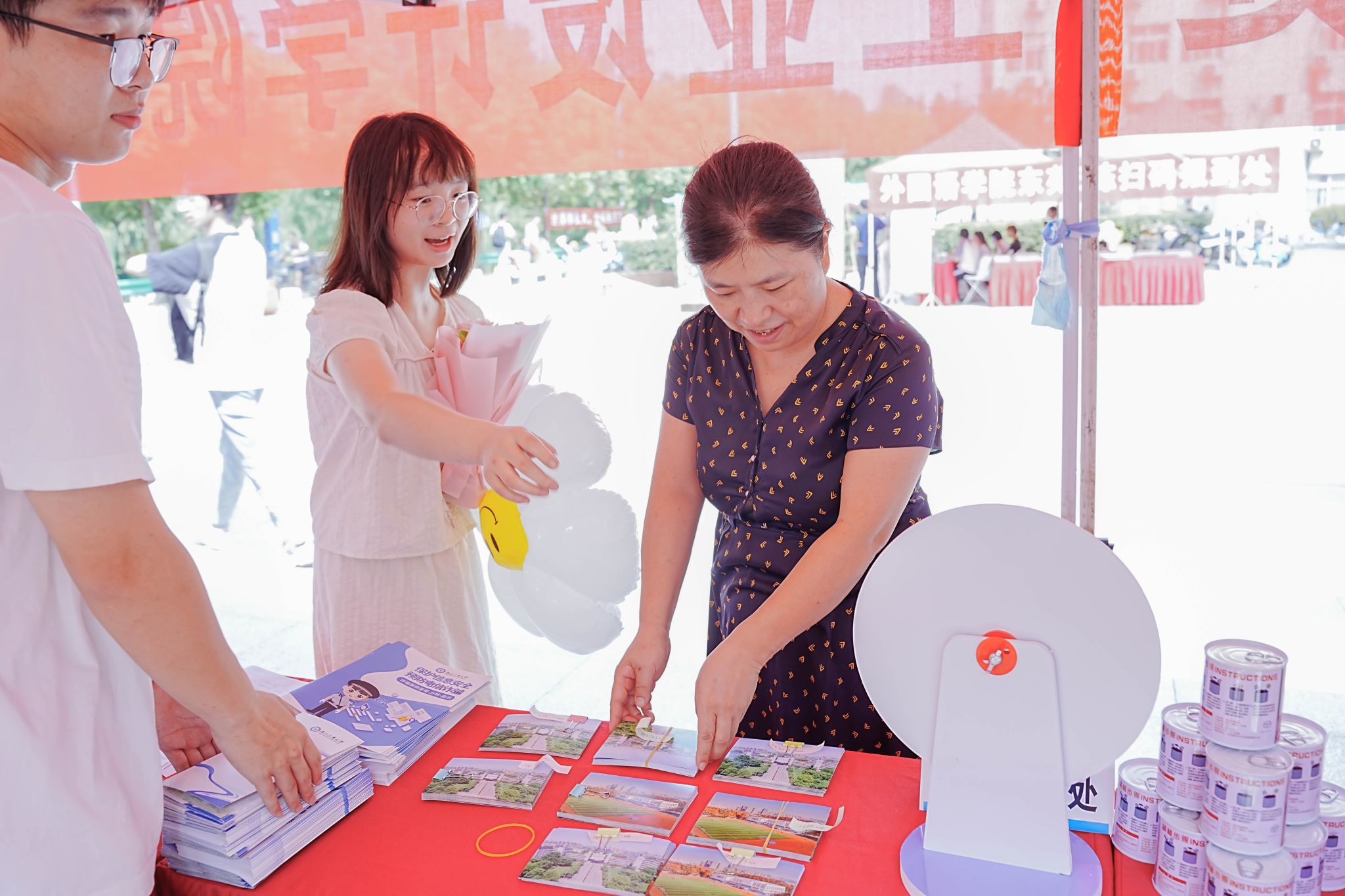 11日上午,陈自才副董事长在公司领导的陪同下走访新生报到点,并与员工及员工家长展开亲切互动。