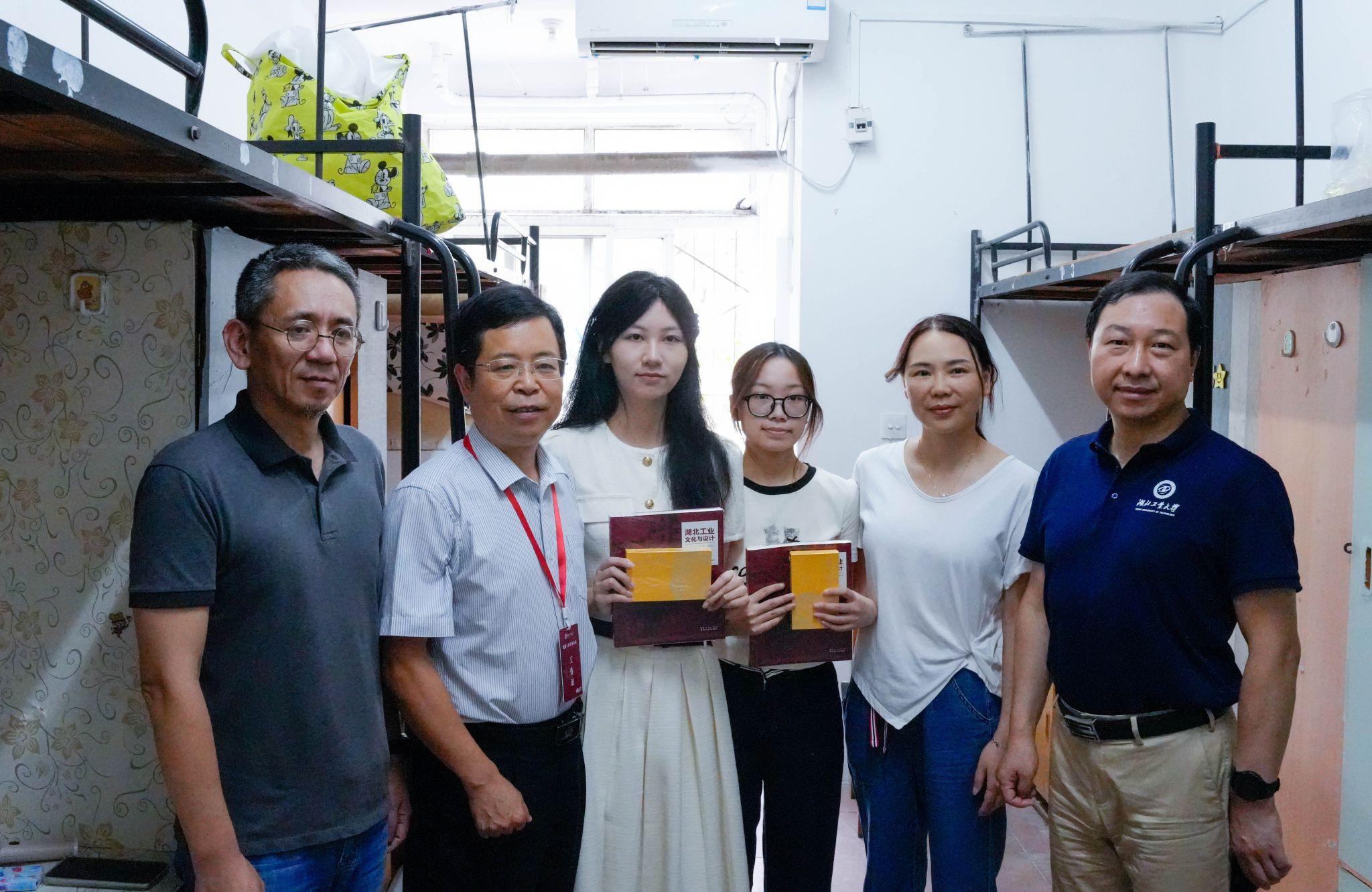 陈董事长走进新生宿舍,关切地询问了报到和入住情况,并鼓励新生们积极走出宿舍,充分利用教室、图书馆和体育馆等校园资源。在走访公司英雄员工萧栋栋外甥女--萧水寒宿舍时,陈董事长强调了继承英雄精神的重要性,并鼓励她独立自主,从小事做起,以实际行动传承英雄精神。家长们对校领导的关心以及迎新工作的精心筹备表示衷心感谢,并对孩子们在湖工大的未来发展充满信心。