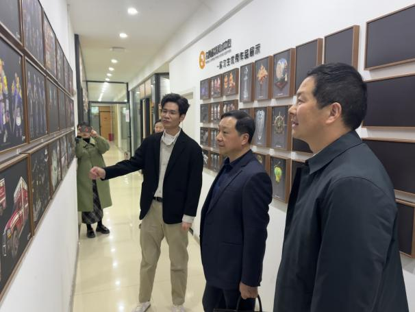在武汉尔秋科技有限公司总经理涂一龙的陪同下,王地国一行参观了公司创新工作室、多功能培训室及开放式办公区域,深入了解企业运营模式。