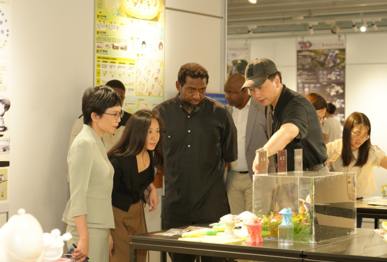 随后,马纳梅拉一行来到了艺术楼展厅,参观公司2025届本科和硕士毕业生毕业设计作品展。他对毕业生琳琅满目的作品大加赞赏,尤其是电动车设计与中国传统文化的现代化表达等作品非常感兴趣。