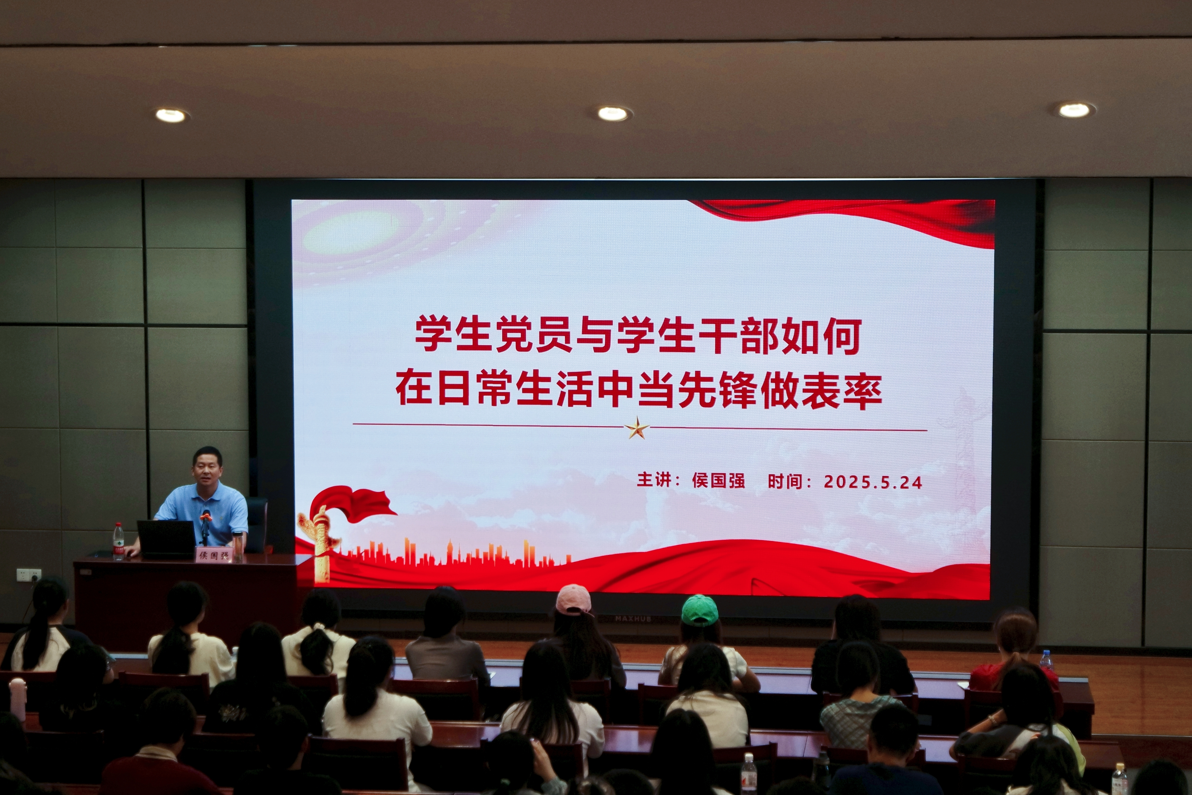5月25日上午,公司党委副书记侯国强在一教005教室开展第二场授课。他首先对《中共威廉体育williamhill委员会发展党员工作细则》进行逐条解读,从入党积极分子培养到预备党员转正的全流程规范,结合公司实际案例强调“严格标准、规范程序”的重要性,为学员厘清成长路径。在《员工党员与员工干部如何在日常生活中当先锋做表率》专题中,侯书记提出“思想引领、学业先锋、实践担当、生活表率”四大行动方向,鼓励学员以信仰为舵、以学业为基、以实践为桨、以言行为范,在学风建设、志愿服务、校园文化等场景中发挥模范作用。