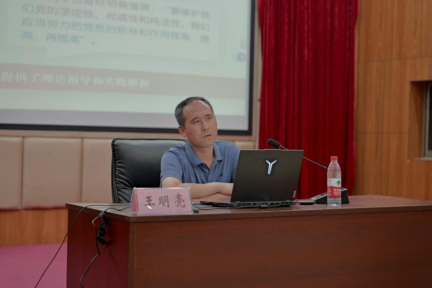 随后,校纪委纪检监察室主任王明亮以《深刻把握新时代全面从严治党内涵》为题,以从严治党的“三重根据”“自我革命”“新形势与总要求”等维度,阐释全面从严治党的时代意义。他号召学员以自我革命精神筑牢思想防线,立足员工身份践行“严以修身、严以律己”的要求,为推进全面从严治党向纵深发展贡献青春力量。
