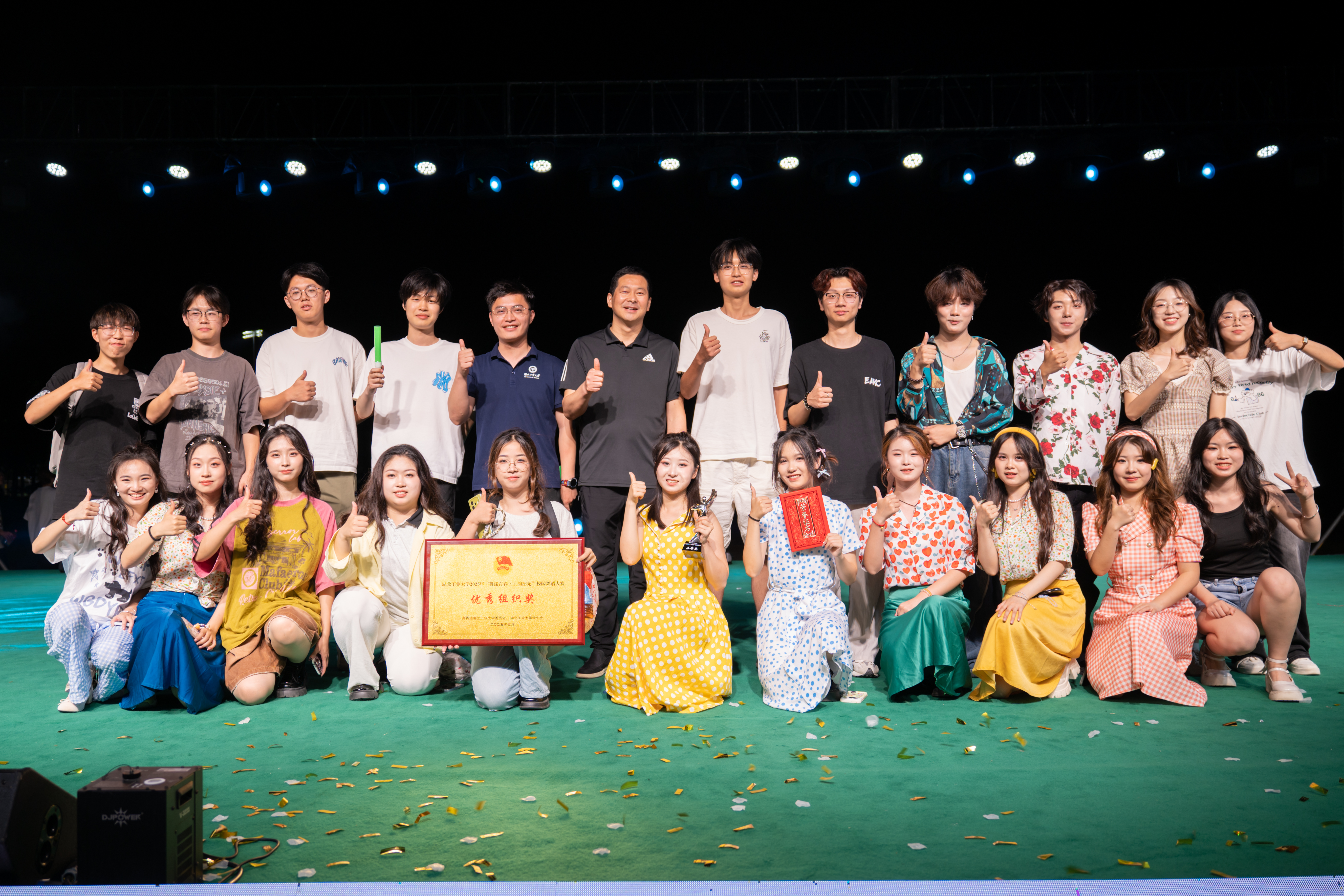 荣誉背后,既凝结着演员们两个多月排练的辛勤汗水与不懈坚持,也离不开学工办全程跟进、周密安排为排练和演出提供的坚实保障。从创意构思到动作打磨,从整体编排到细节精修,排练厅里每一次精益求精的反复雕琢,都凝聚着演员们对舞台的敬畏与热爱。这份从“绘梦”到“追梦”的执着付出,正是青春最闪耀的注脚。