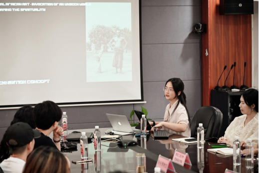 座谈交流中,荆州博物馆陈列部王丹主任介绍了馆藏特色,并围绕荆楚文化美学深入解读了代表性文物所承载的设计精髓。饶鉴经理与黄亮主任分别介绍了公司的办学特色与文创成果,提出文博资源与设计教育融合的广阔前景。
